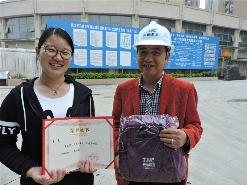天馬建設(shè)集團(tuán)2017年第一季度安全生產(chǎn)優(yōu)秀資料員:中新環(huán)保產(chǎn)品研發(fā)基地項(xiàng)目資料員——吳玉婷