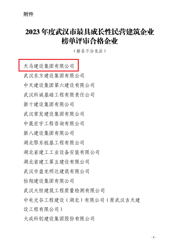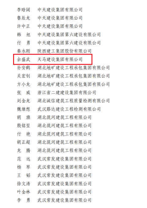 近日,天馬建設(shè)集團(tuán)榮獲2023年度武漢市最具成長性企業(yè)和2022-2023年度武漢地區(qū)建筑業(yè)優(yōu)秀企業(yè),集團(tuán)黨委書記、董事長馮義橋獲“優(yōu)秀企業(yè)家”,集團(tuán)總工程師劉剛獲“優(yōu)秀總工程師”,余勝武獲“優(yōu)秀項目經(jīng)理”。